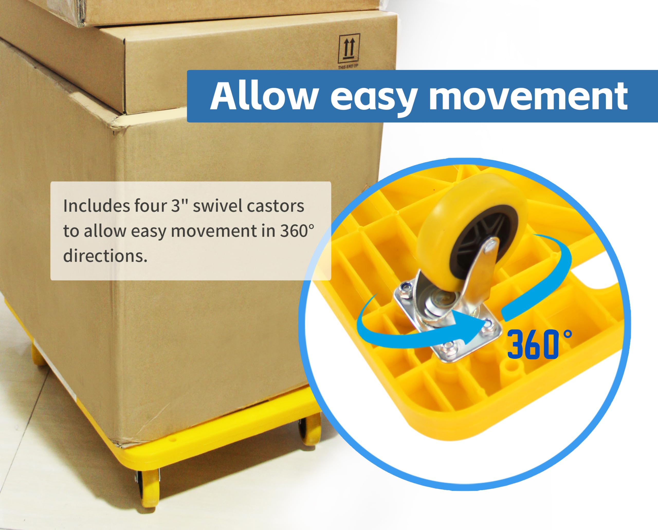 - Solid molded platform features a ridged non-slip surface that is ideal for moving narrow items or supporting furniture legs
