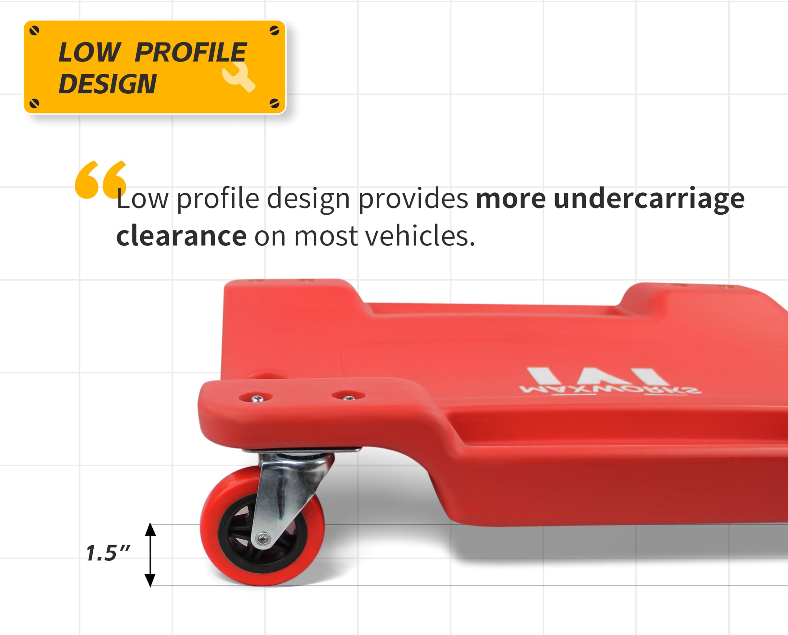 MAXWORKS 50874 40 Inch Plastic Rolling Garage Creeper with Padded Headrest and Dual Tool Trays, 300 Lbs