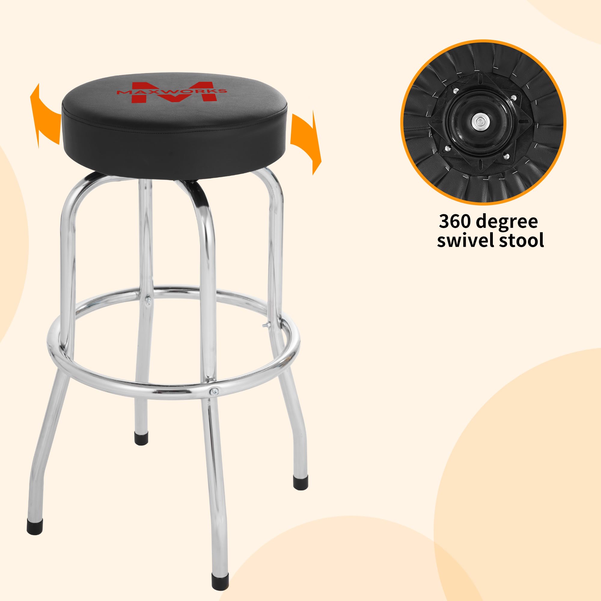 MaxWorks 51090 Swivel Bar Stool, Padded Seat with Chrome Plated Legs, Black, 300-Lb Capacity, 28-1/4" Tall, 14-1/2" Diameter Surface, Ideal for Garage, Shop, Workbench, Bar