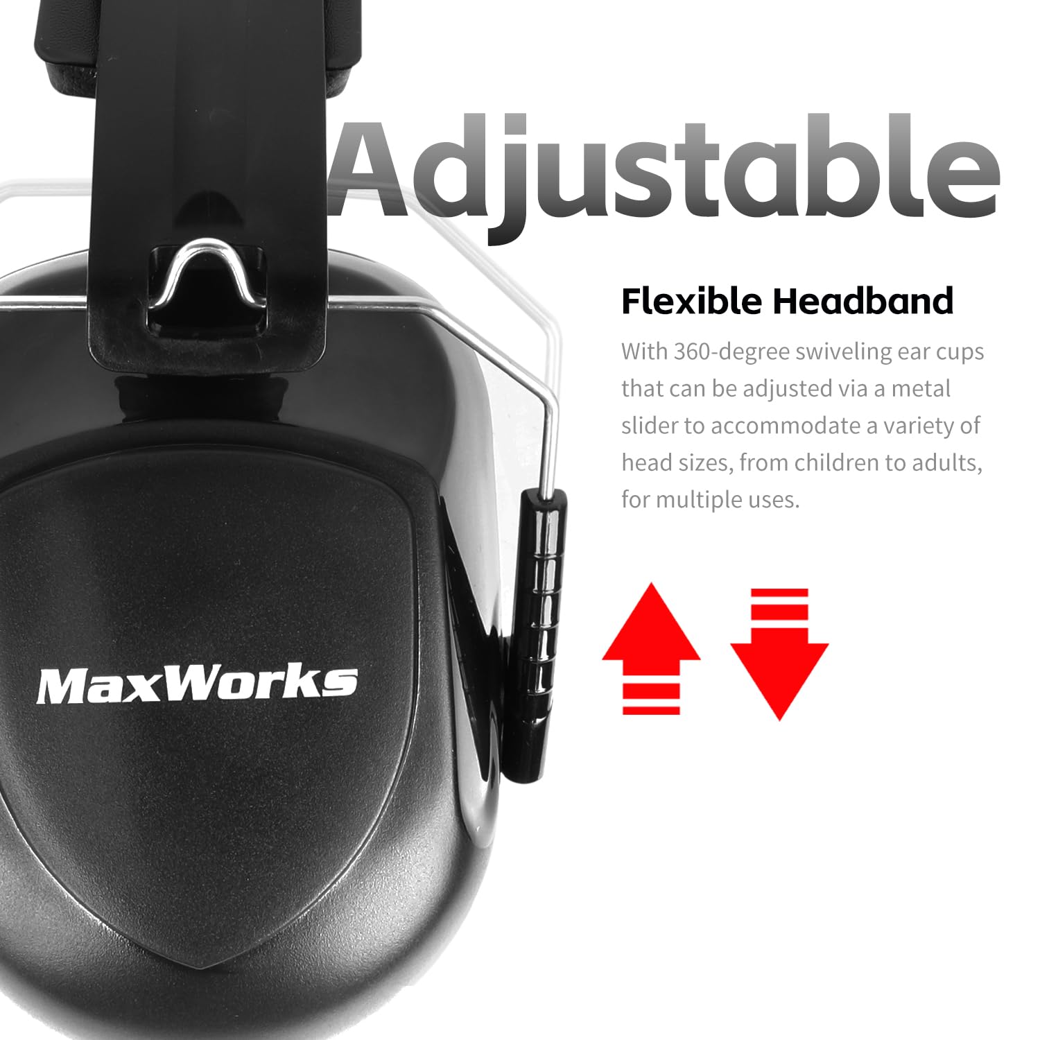 MaxWorks Safety Ear Muffs NRR 26dB Noise Reduction Hearing Protection Foldable and Adjustable Ear Defenders for Construction Shooting and Loud Environments (51073)—